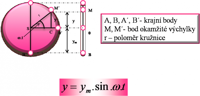 -Kmitavý pohyb je průmět rovnoměrného pohybu po kružnici.